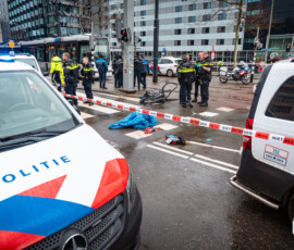 De Schiedamsedijk in Rotterdam is vanwege het onderzoek afgesloten. Trams rijden niet langs het ongeval en ook richting de Erasmusbrug is geen tramverkeer mogelijk. Reizigers zijn uit stilstaande trams gehaald. In de rijrichting van het ongeval staat veel verkeer vast. De politie Den Haag doet onderzoek naar de toedracht.