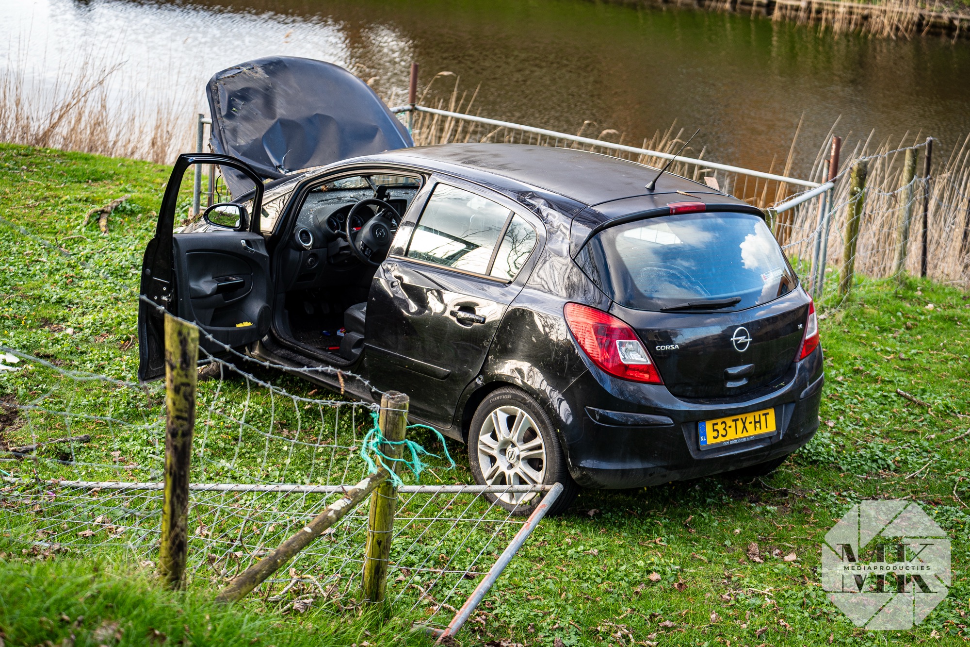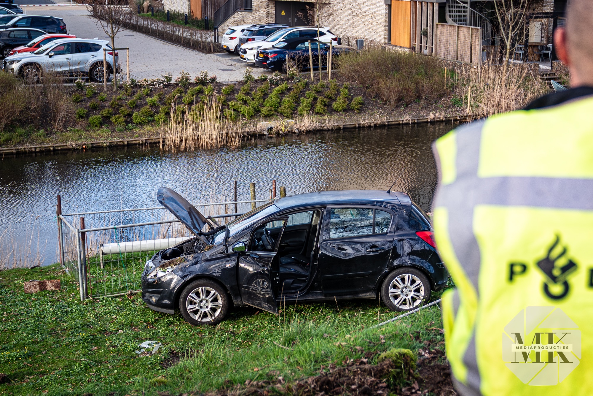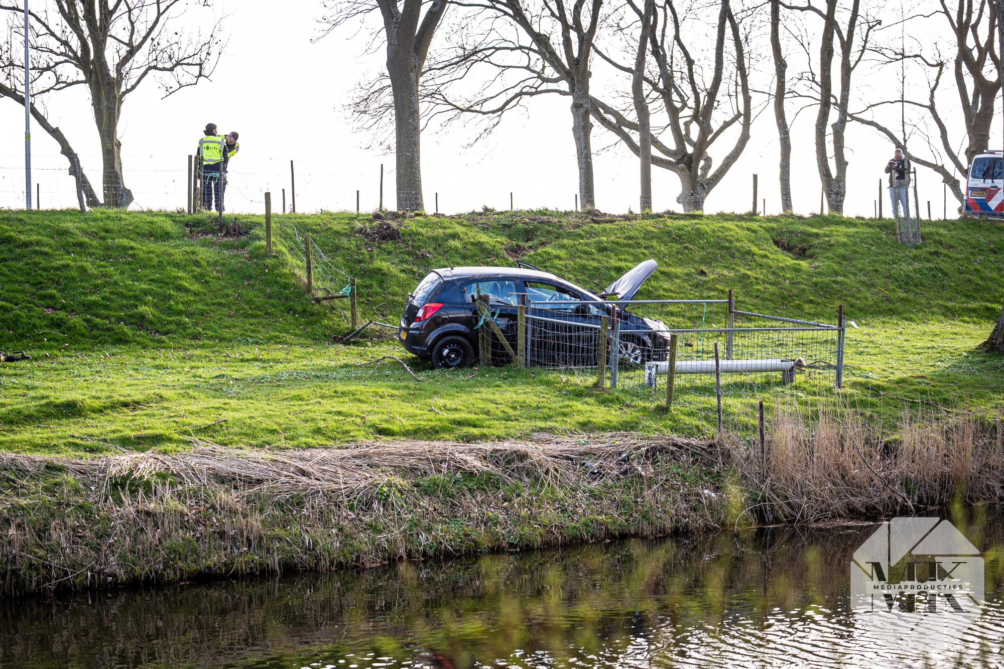 Melders dachten dat de auto in het water was terechtgekomen. Daarom werd ook de brandweer gealarmeerd. Ter plaatse bleek dat het voertuig naast de weg tot stilstand was gekomen.
