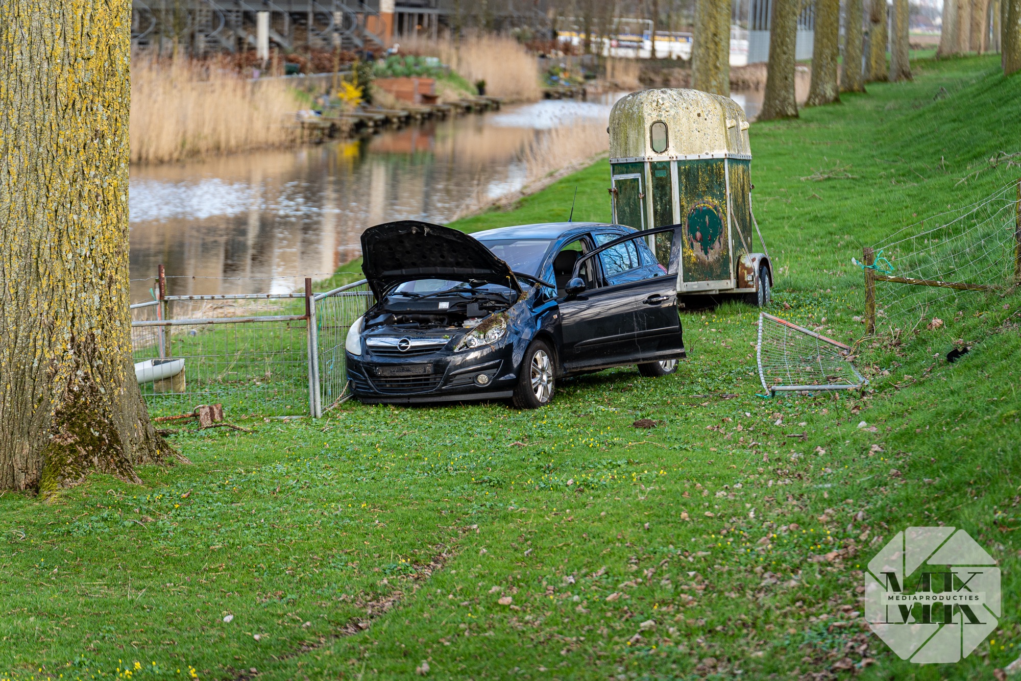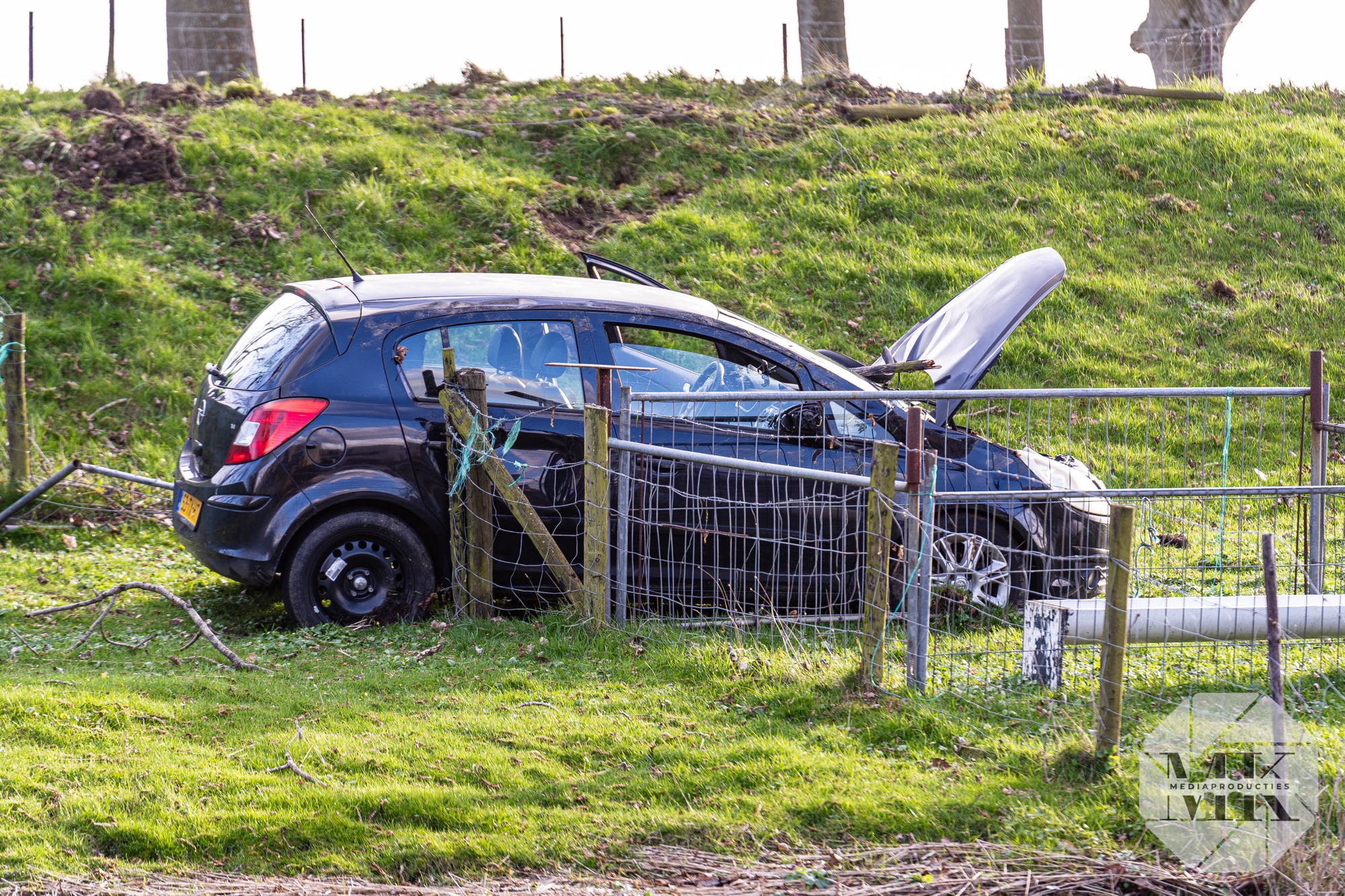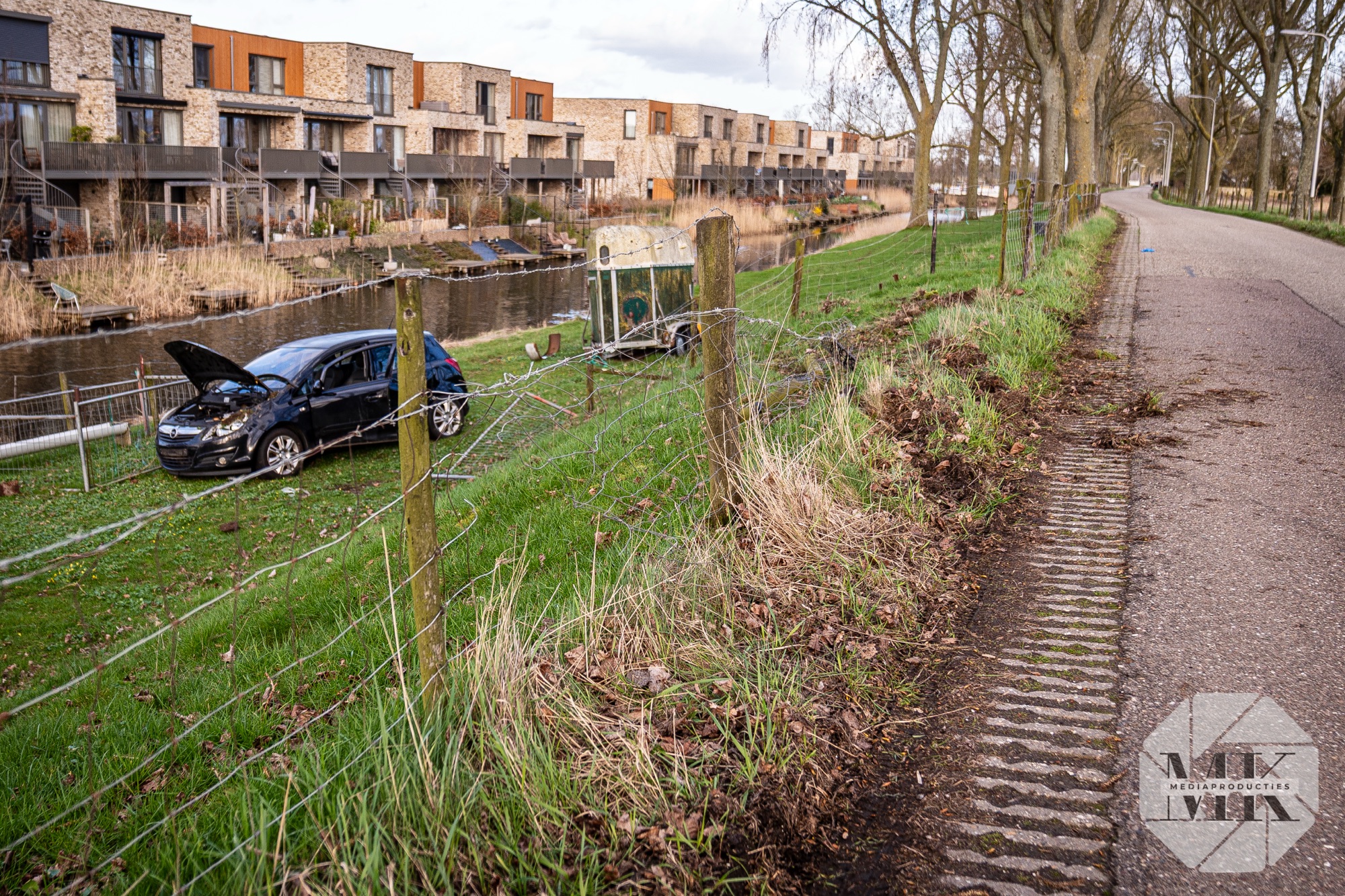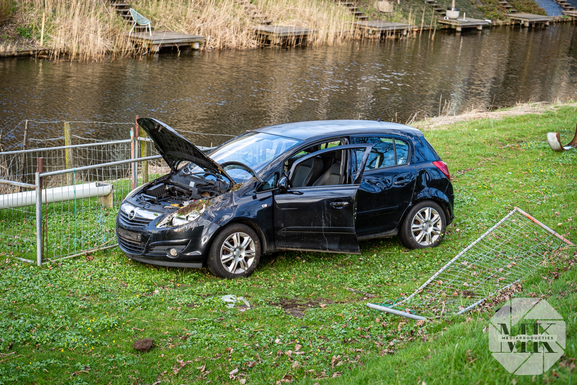 Melders dachten dat de auto in het water was terechtgekomen. Daarom werd ook de brandweer gealarmeerd. Ter plaatse bleek dat het voertuig naast de weg tot stilstand was gekomen.