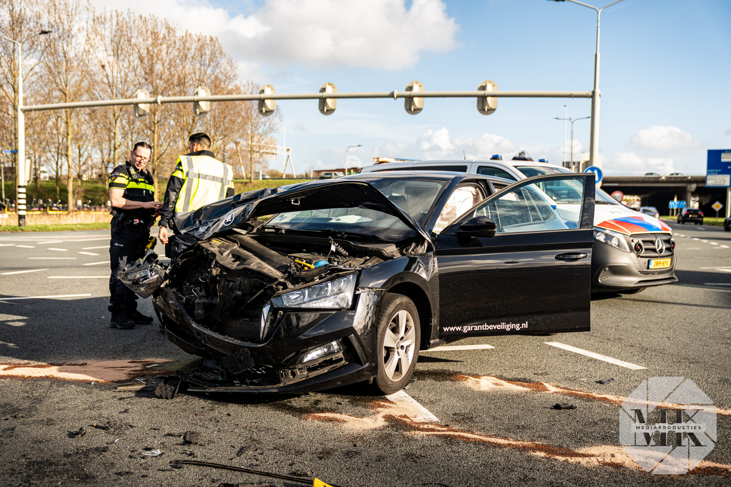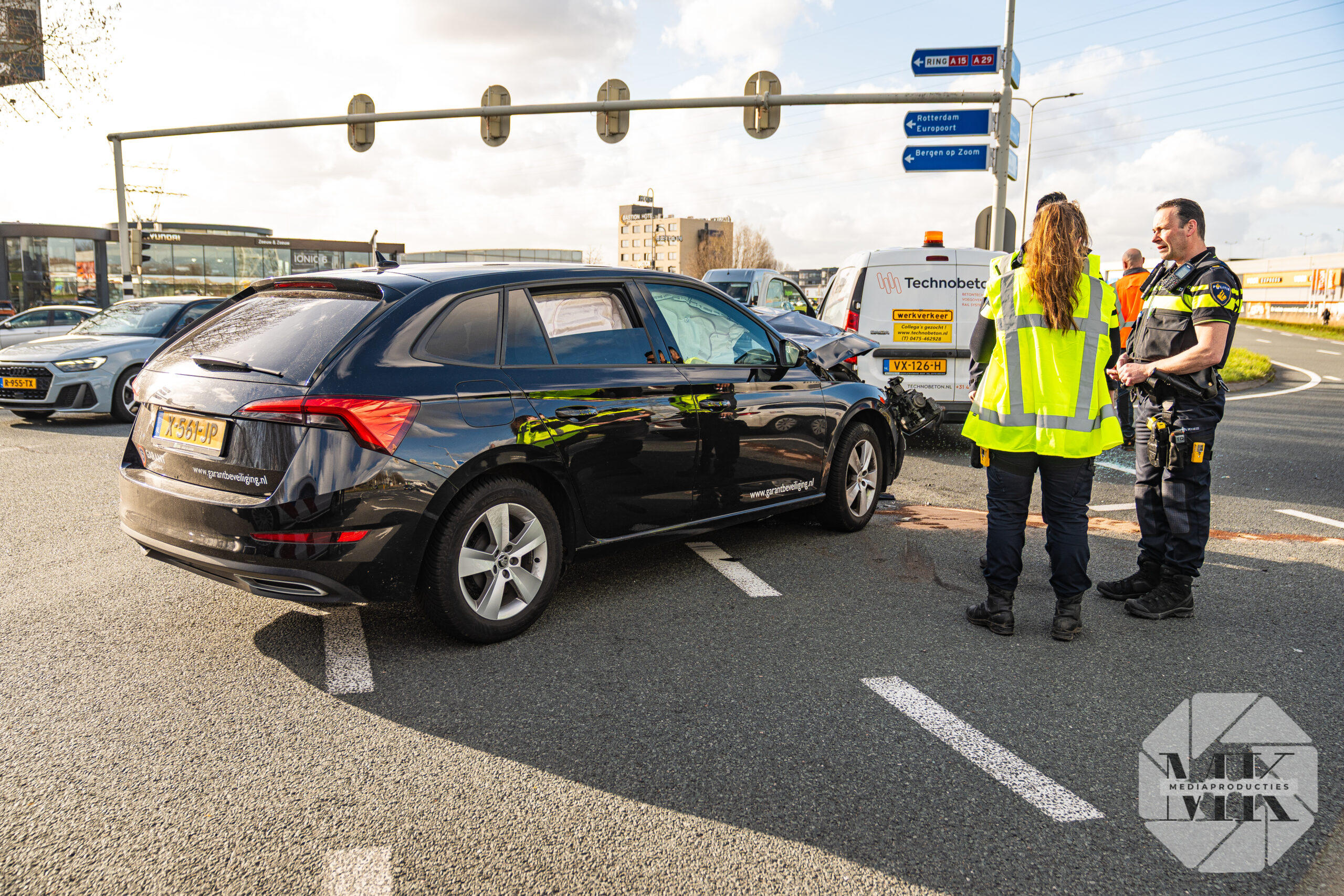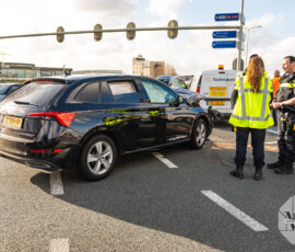Barendrecht – Op de kruising van de IJsselmondse Randweg met de Schaapherderweg in Barendrecht heeft een aanrijding plaatsgevonden tussen een bestelbus en een personenauto. Eén persoon raakte gewond.