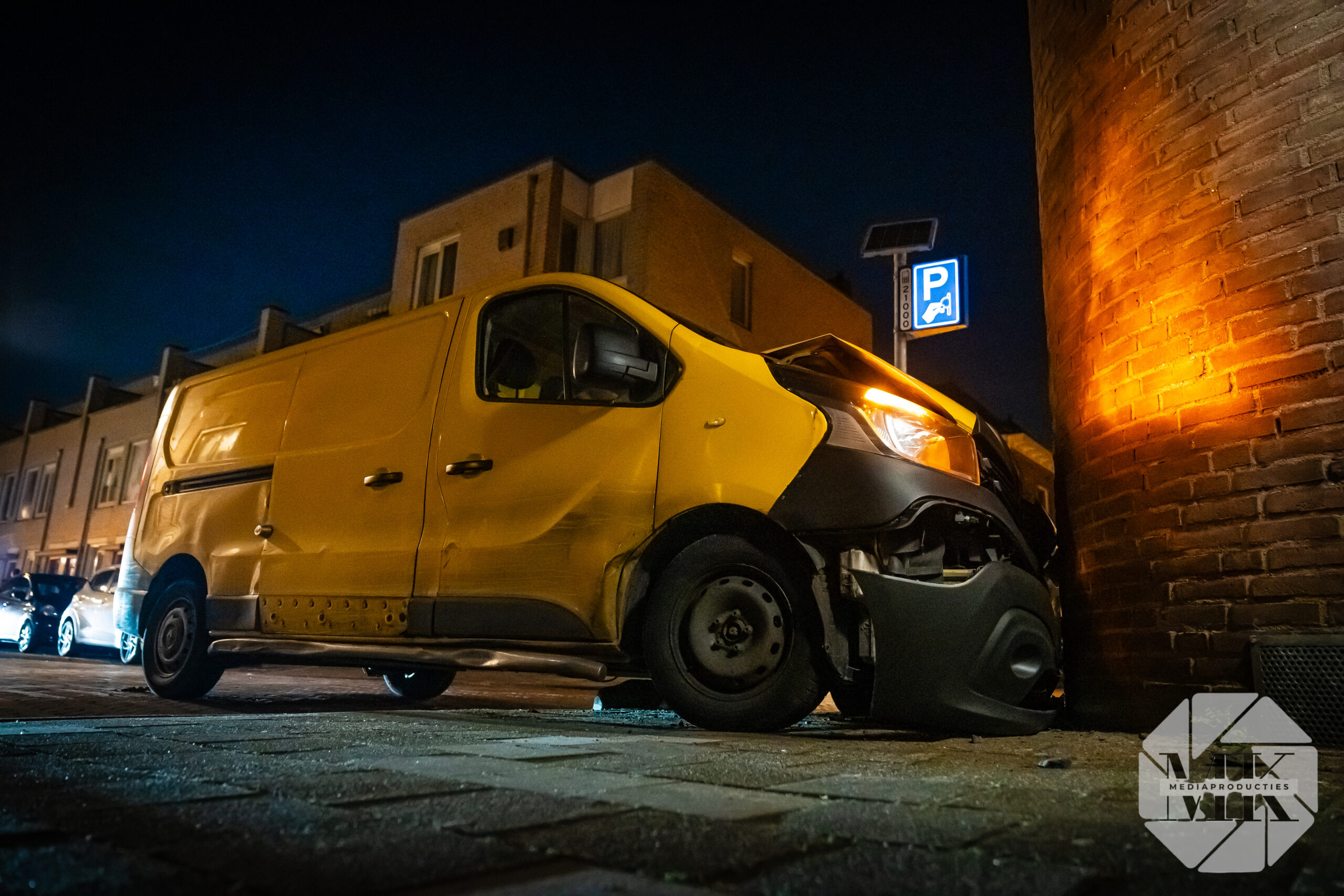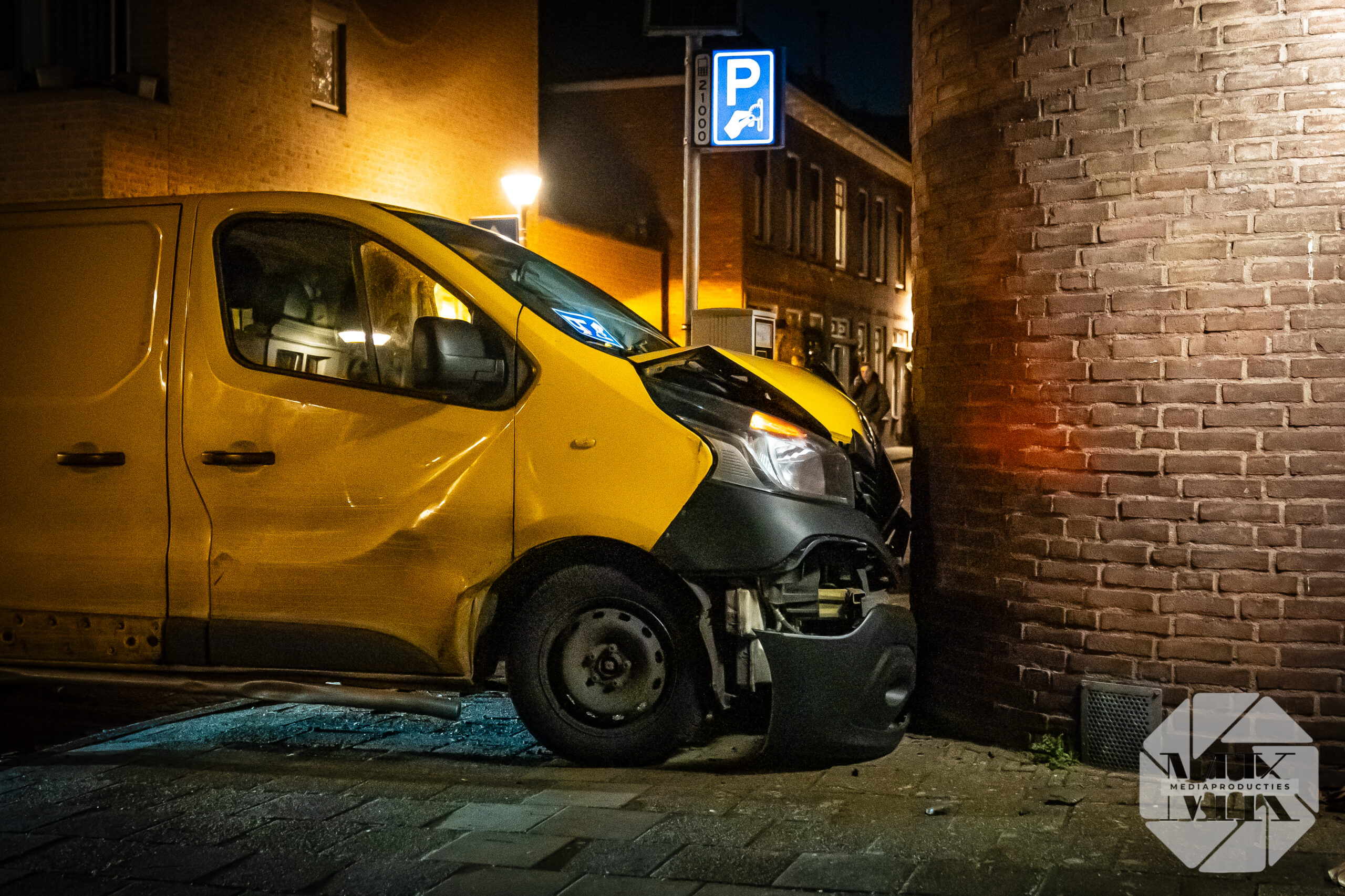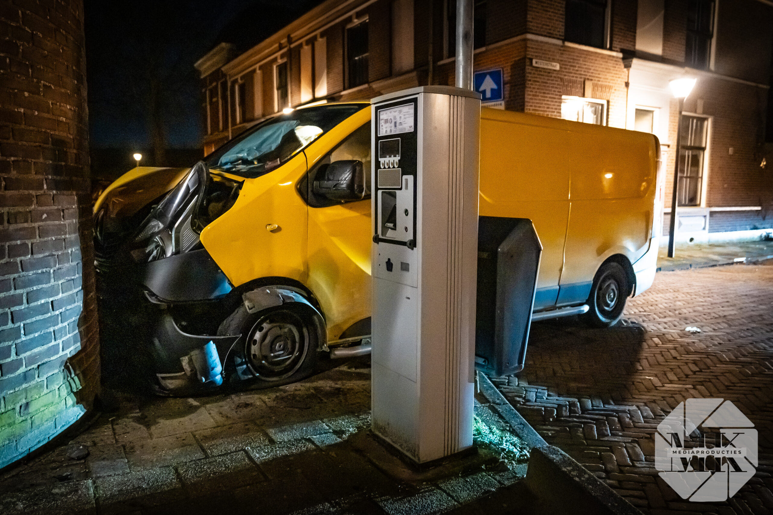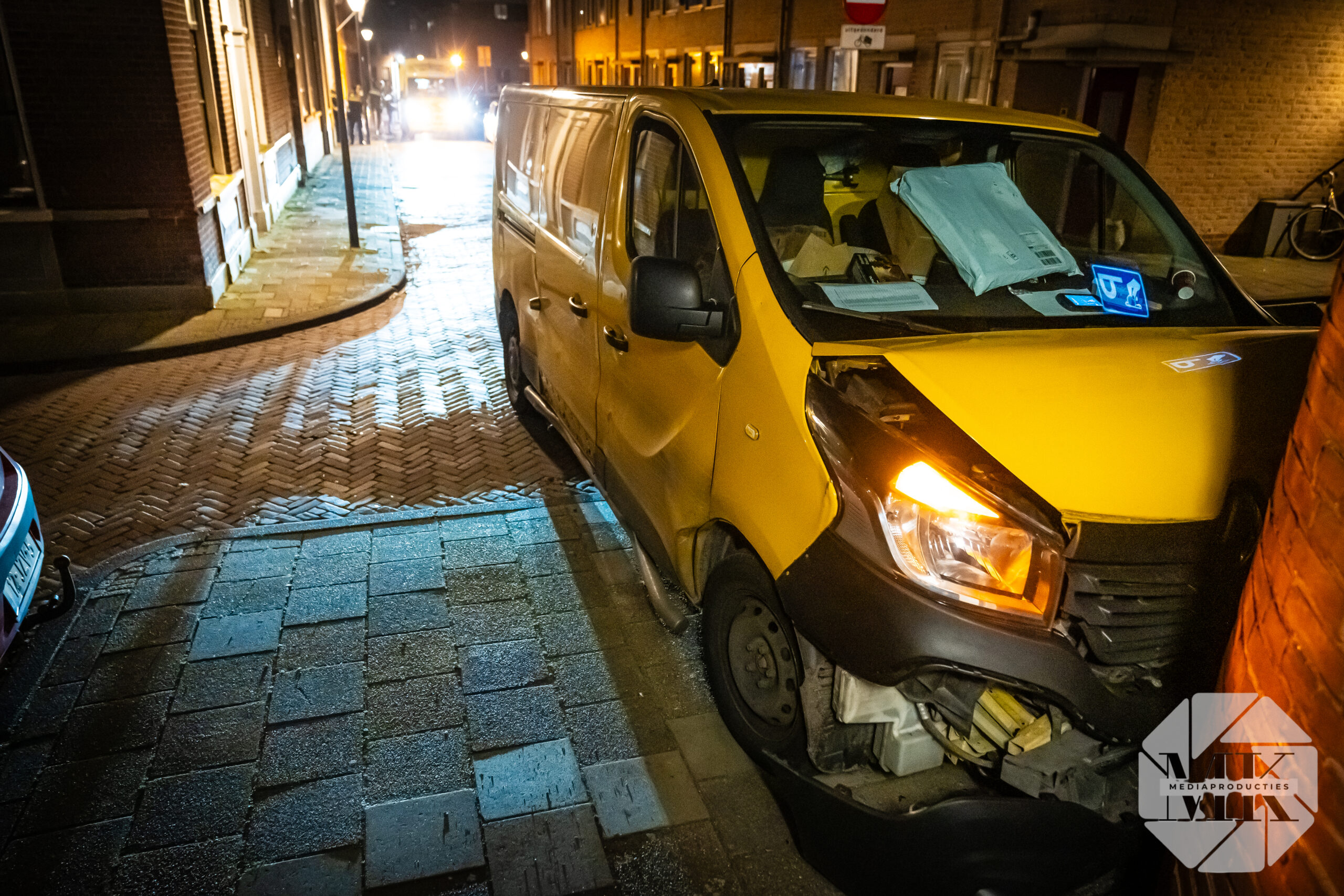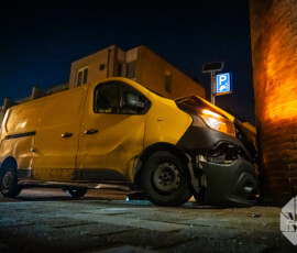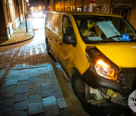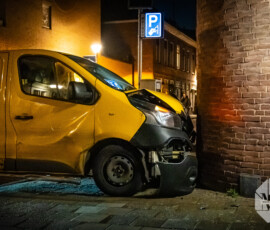 Pakketbezorger rijdt tegen woninggevel Nieuwstad Gorinchem