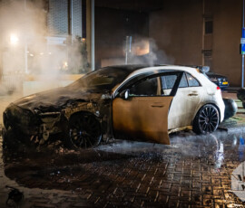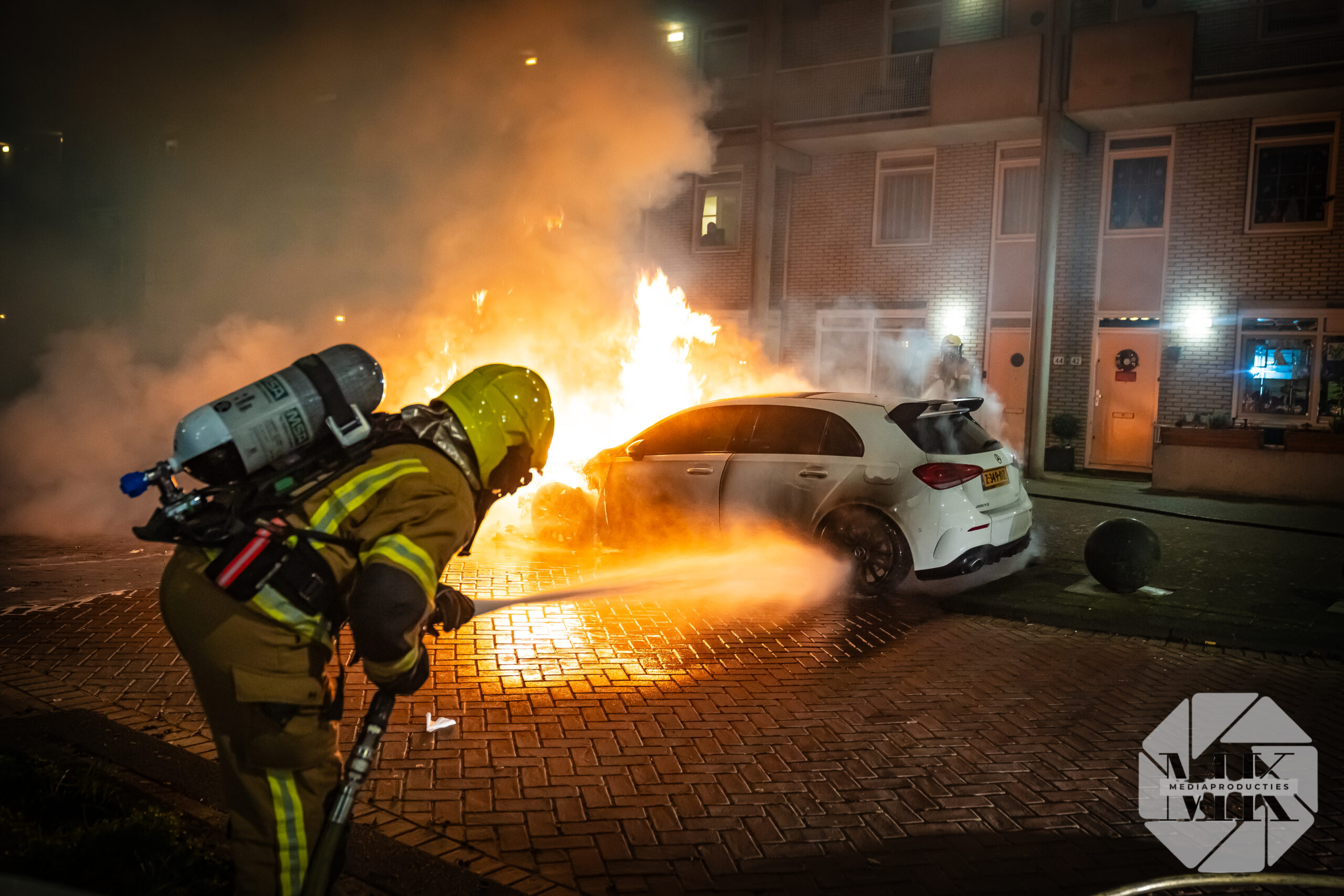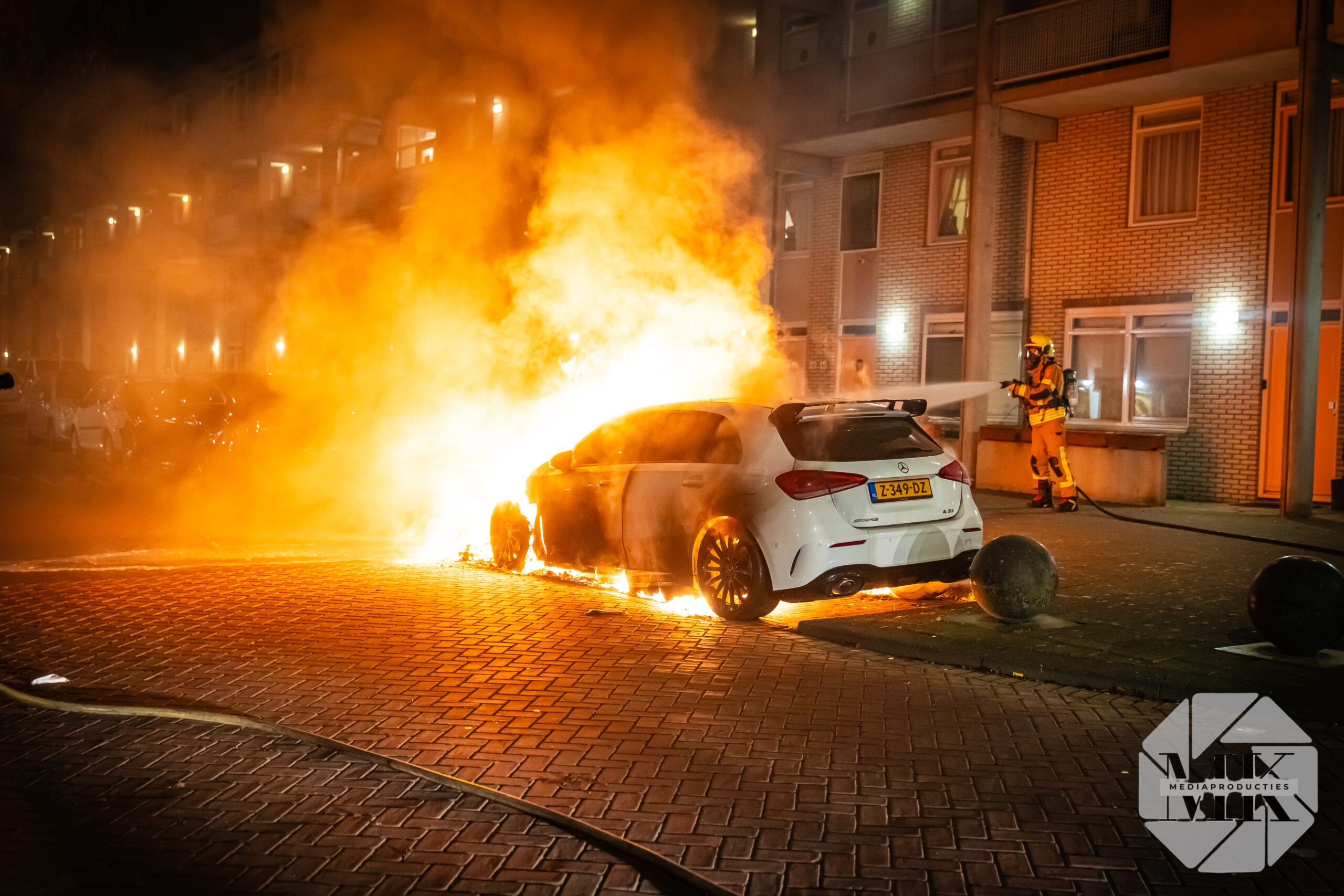 De brandweer had moeite met het blussen van de brand, vermoedelijk in verband met de benzinetank. De politie heeft het voertuig afgezet en gaat uit van brandstichting.