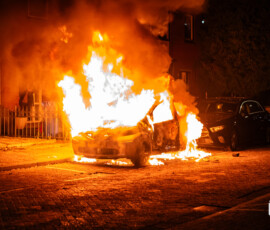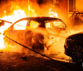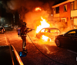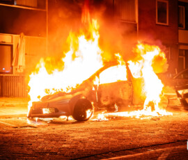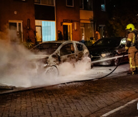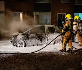 Rotterdam – Aan de Racinestraat in Rotterdam is een geparkeerde auto volledig uitgebrand. Getuigen zagen een persoon een ruit inslaan en iets in het voertuig doen, waarna de persoon wegrende.