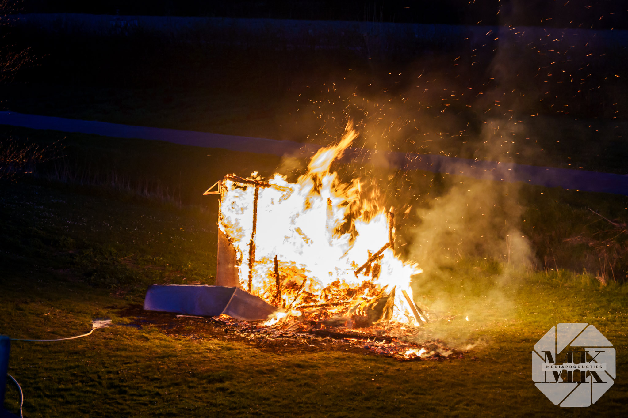 Zwartewaal – Achter een woning aan de Maasdijk in Zwartewaal ontstond brand in een houten constructie. Bewoners staken de constructie zelf in brand en zaten op een bankje terwijl muziek speelde.