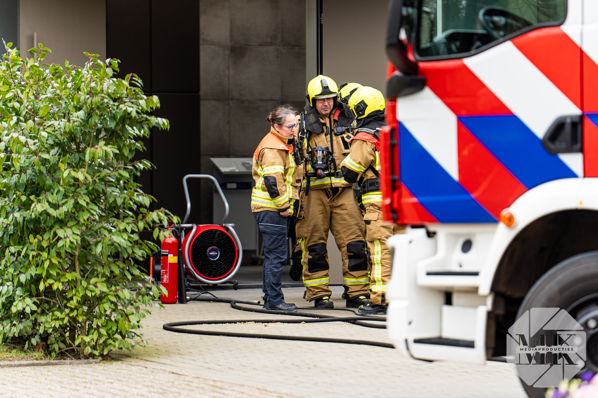 Na de inzet is het pand geventileerd en de rook afgevoerd. Een monteur komt ter plaatse om de installatie te controleren en de verdere afhandeling te verzorgen.