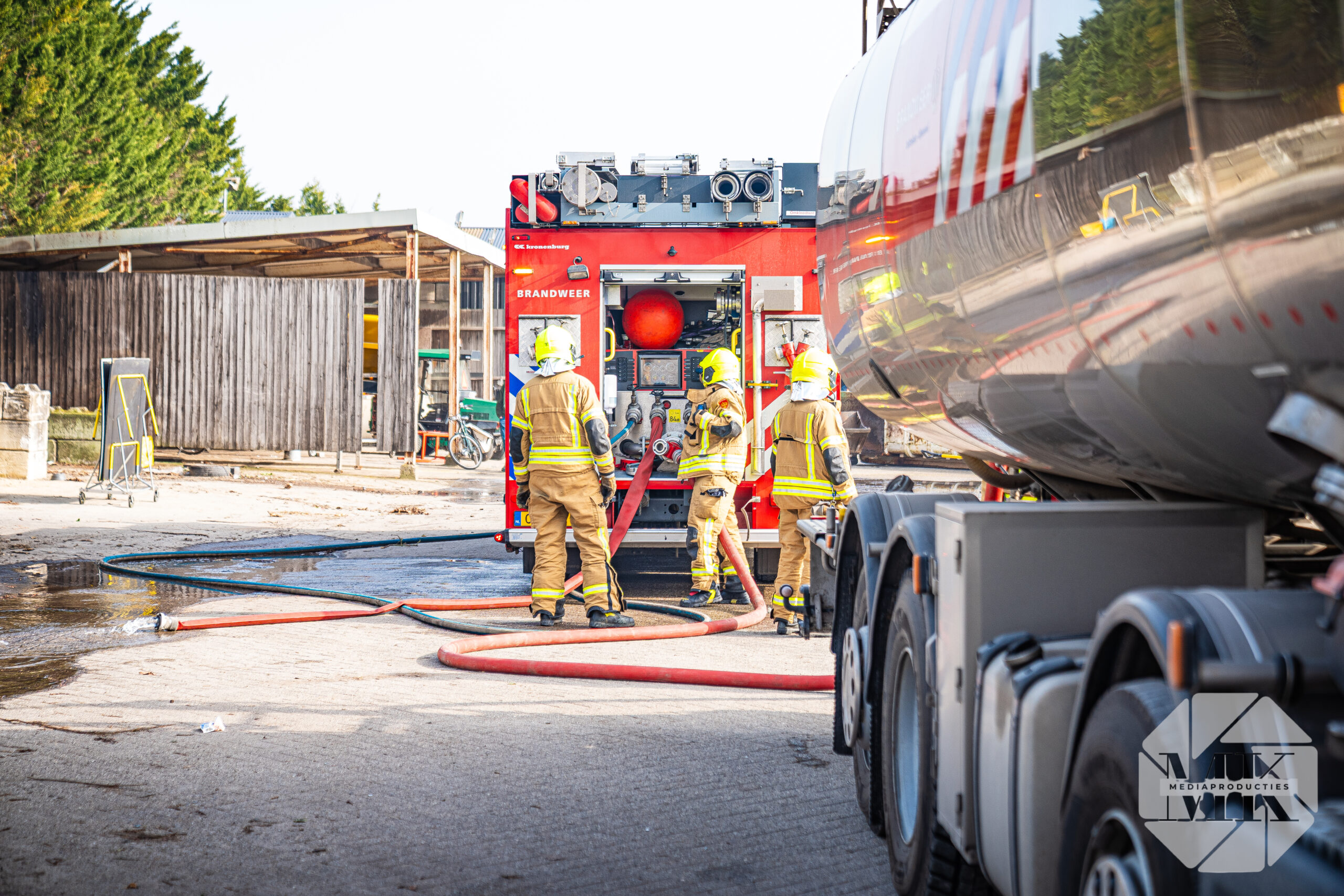 Om voldoende water ter plaatse te krijgen heeft de brandweer een tankwagen ingezet. De brandweer is bezig met bluswerkzaamheden.