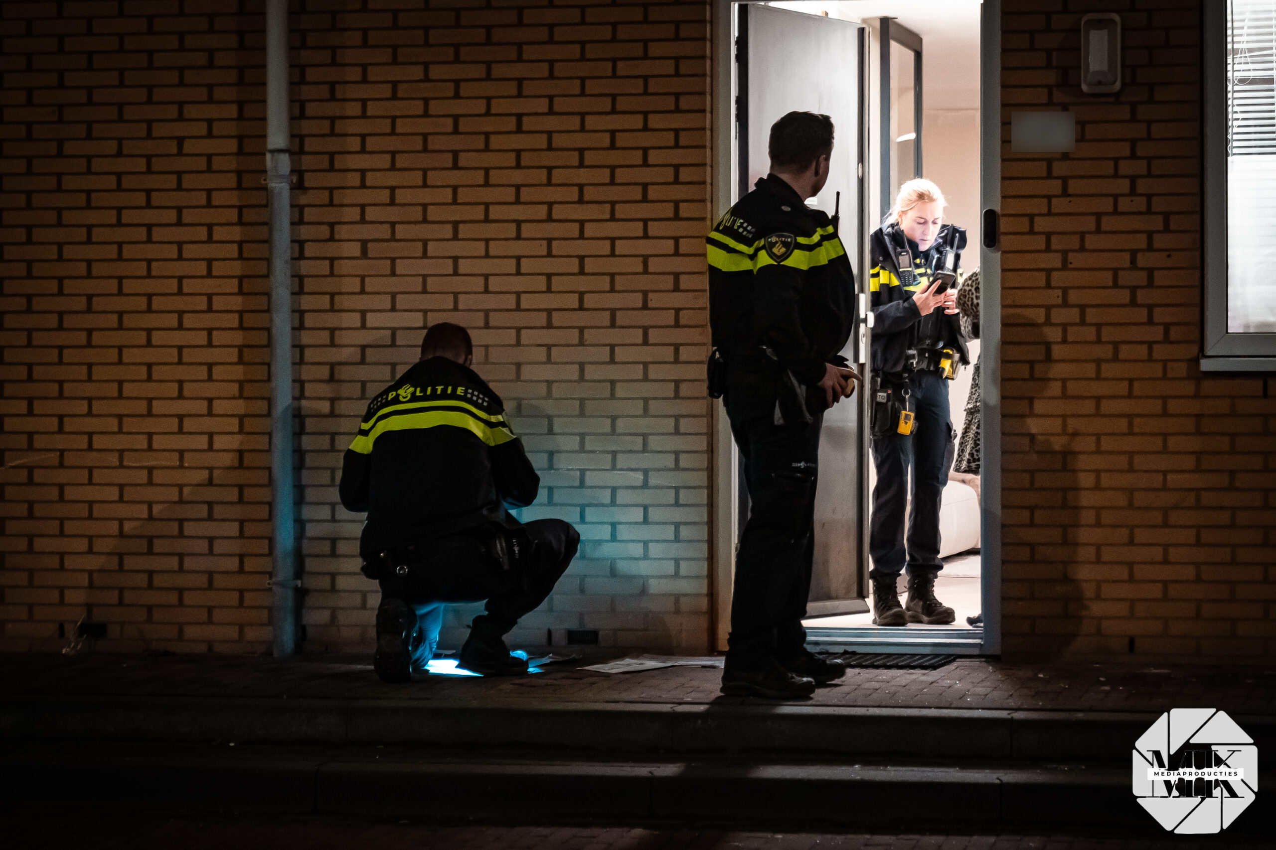 De politie kwam ter plaatse aan de Veerlaan in Rotterdam en heeft sporen veiliggesteld. Ook is een telefoon in beslag genomen.