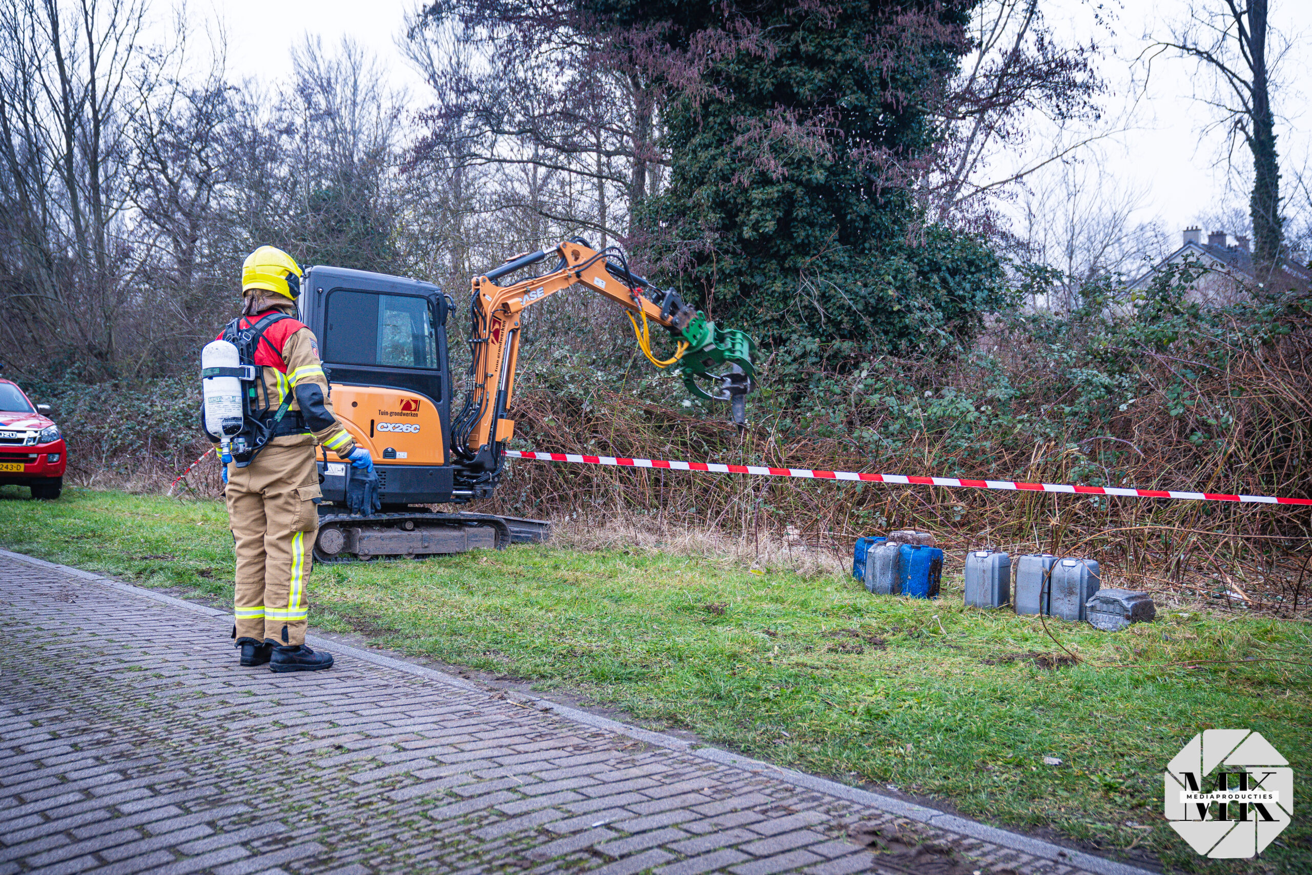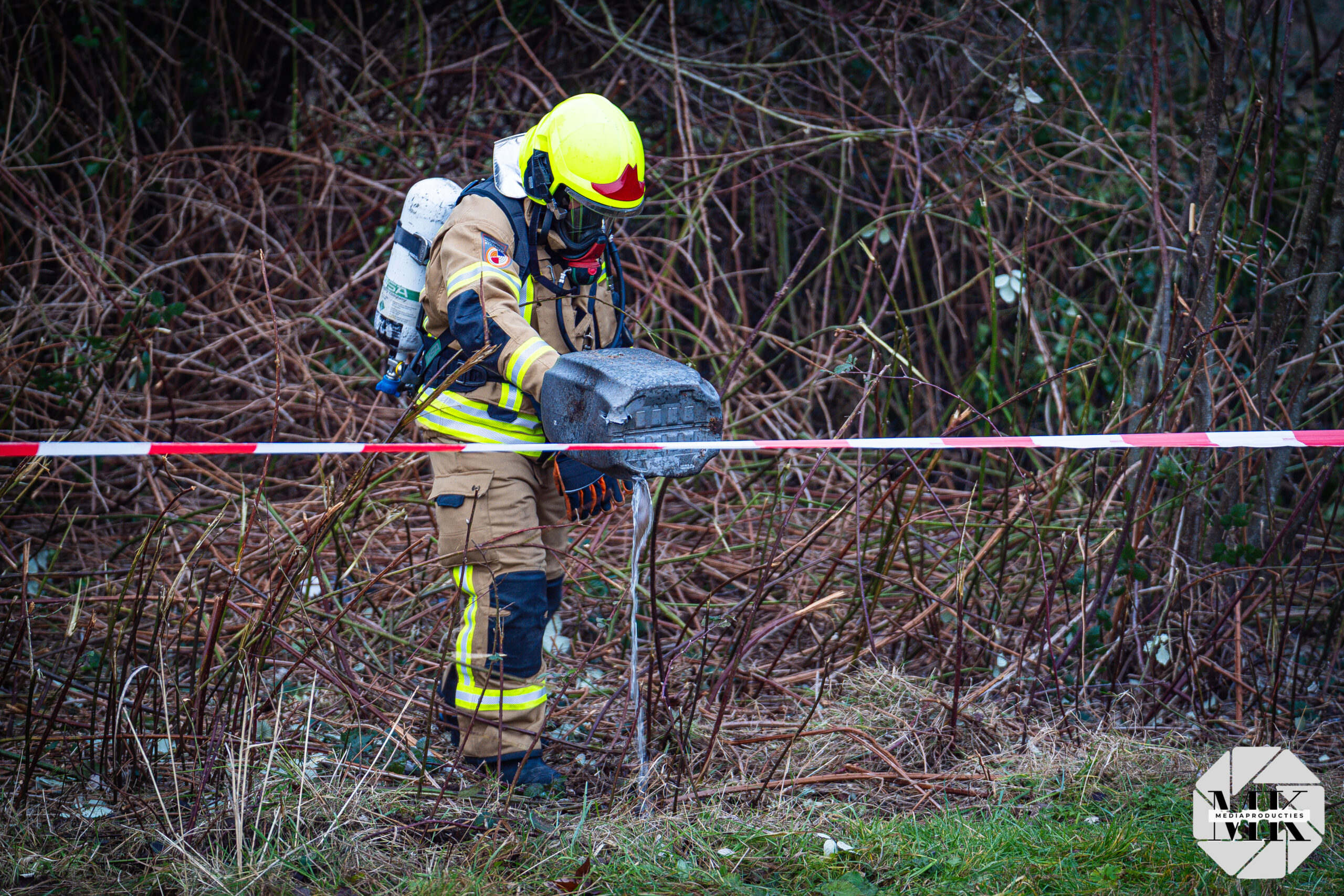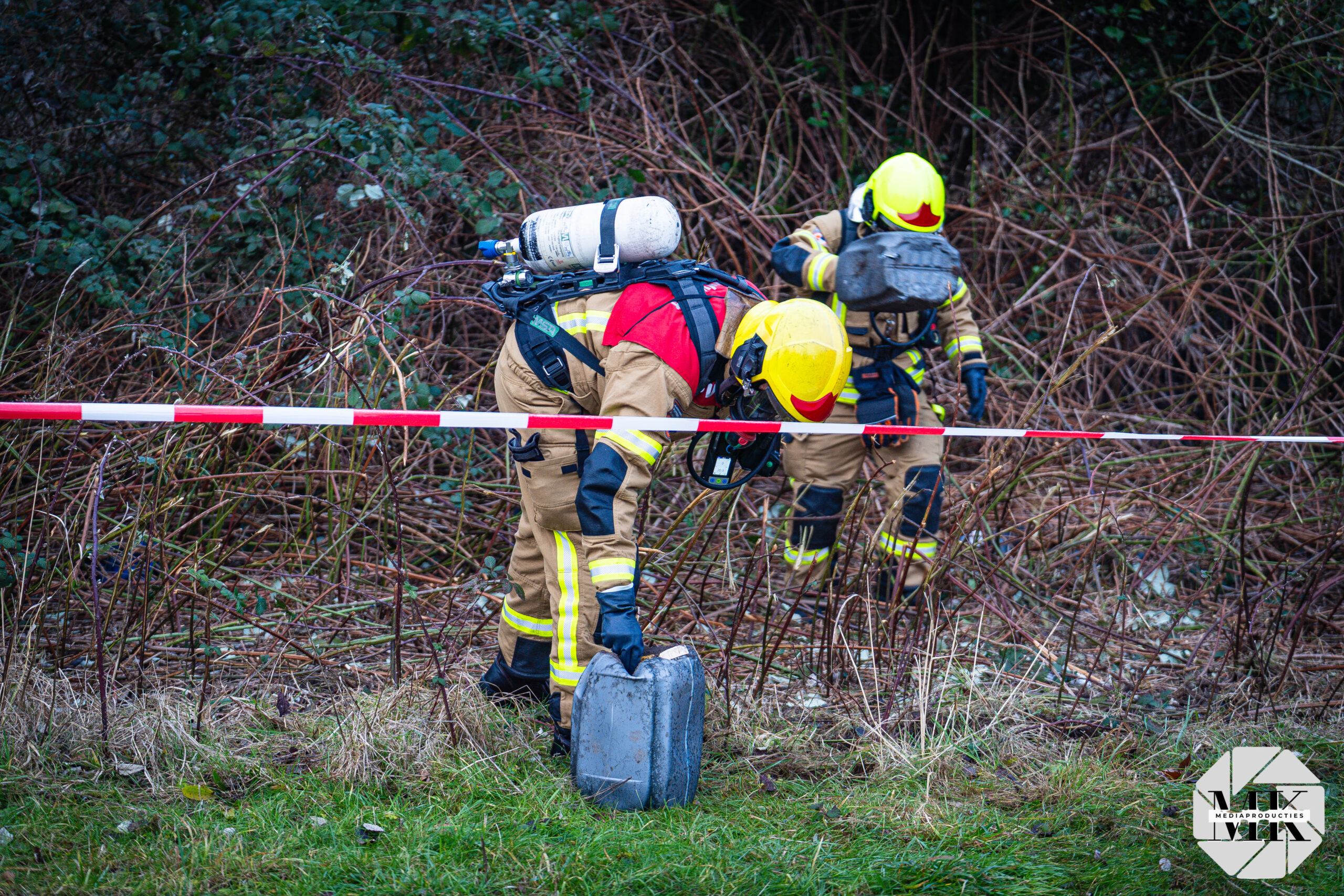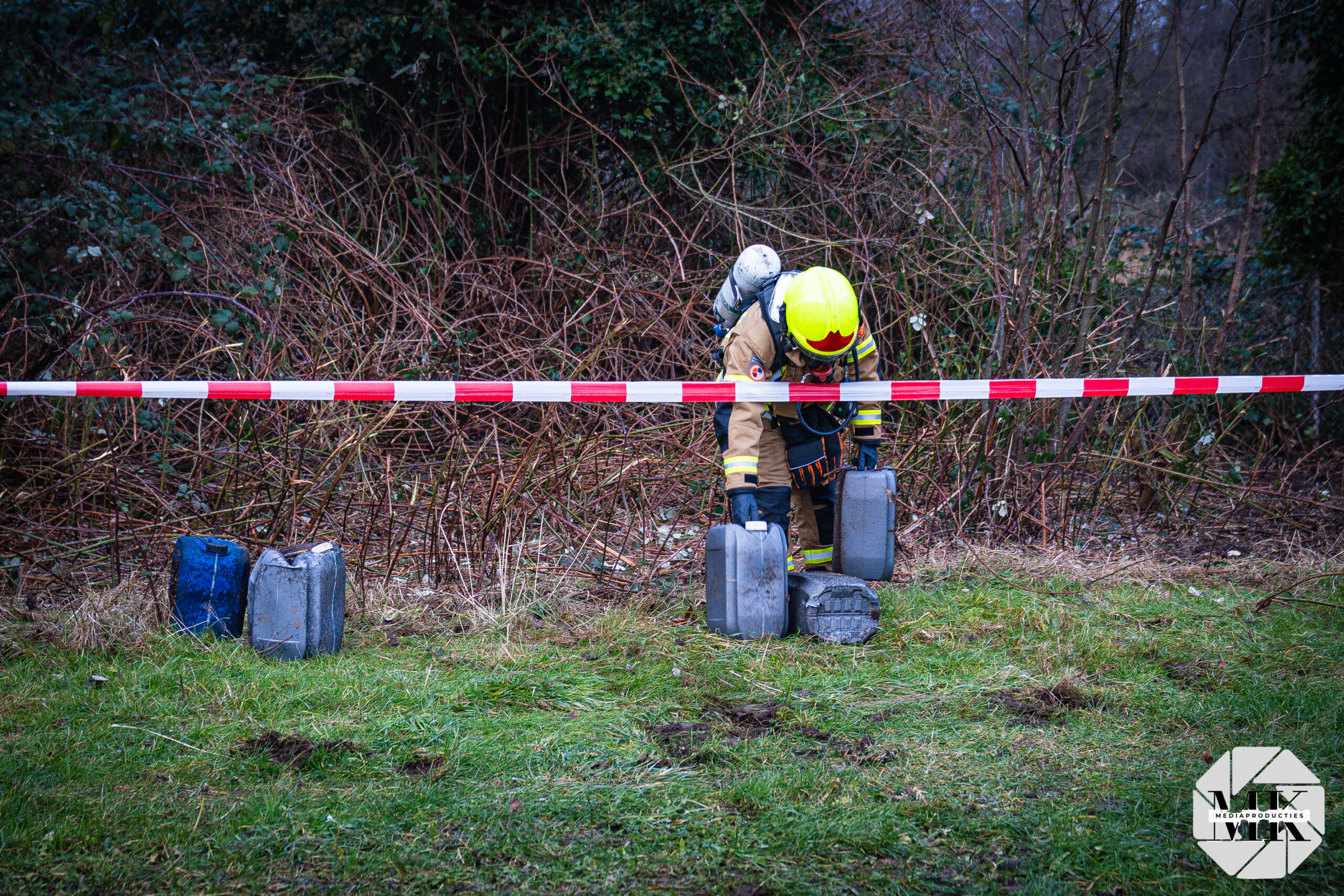 Omdat de inhoud onbekend was, voerde de brandweer metingen uit. Na controle zijn de jerrycans in overleg met de politie uit de bosjes gehaald. In totaal zijn ongeveer tien jerrycans gevonden en met een kraan zijn de bosjes verder opengetrokken nadat meer vaten zichtbaar werden.