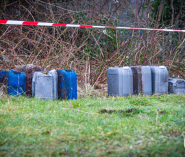 De jerrycans waren gevuld met een bruinige substantie en verspreidden een geur van anijs en aceton. De gemeente zal de vaten afvoeren. De politie doet onderzoek naar de herkomst van de jerrycans.