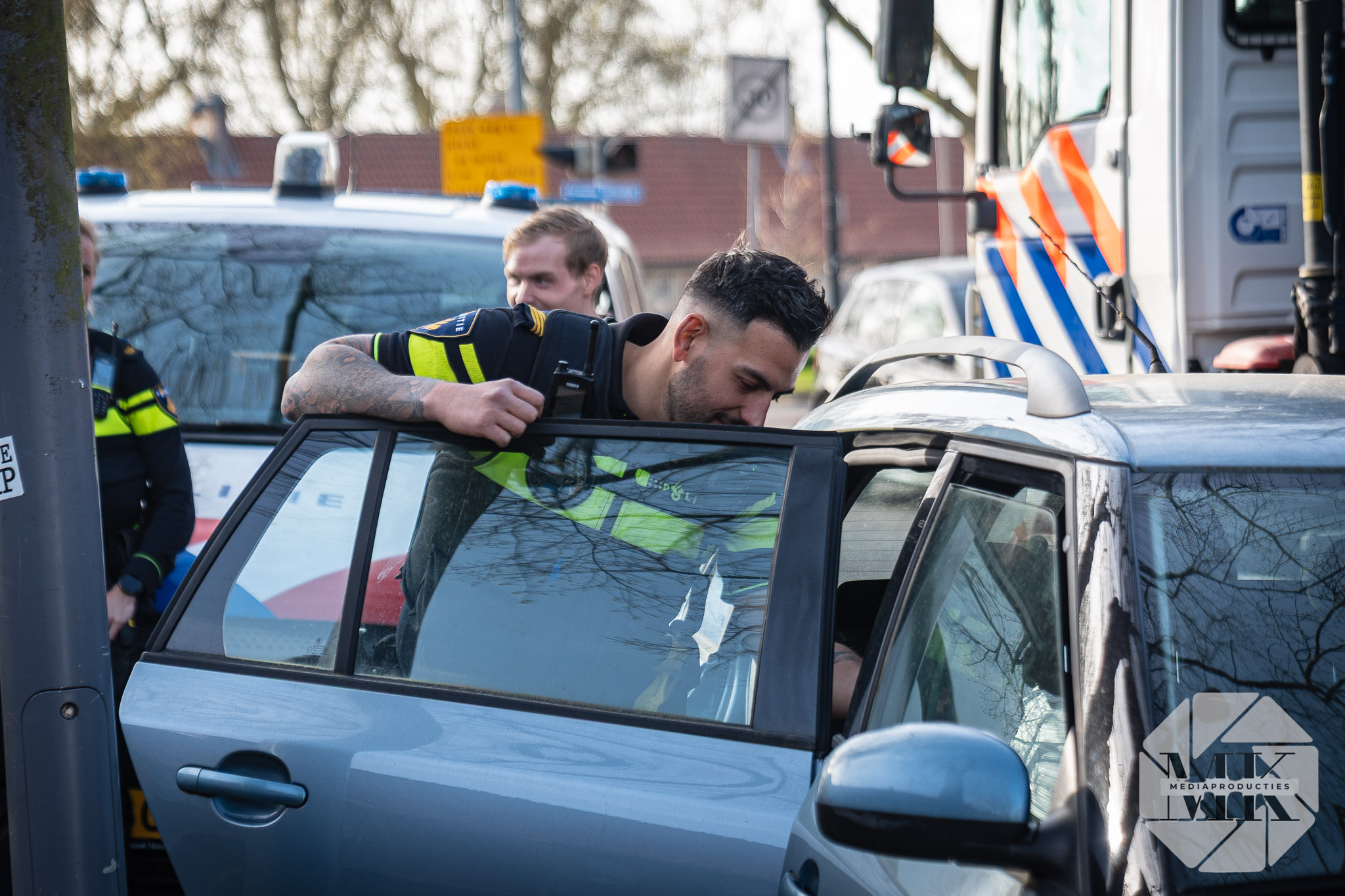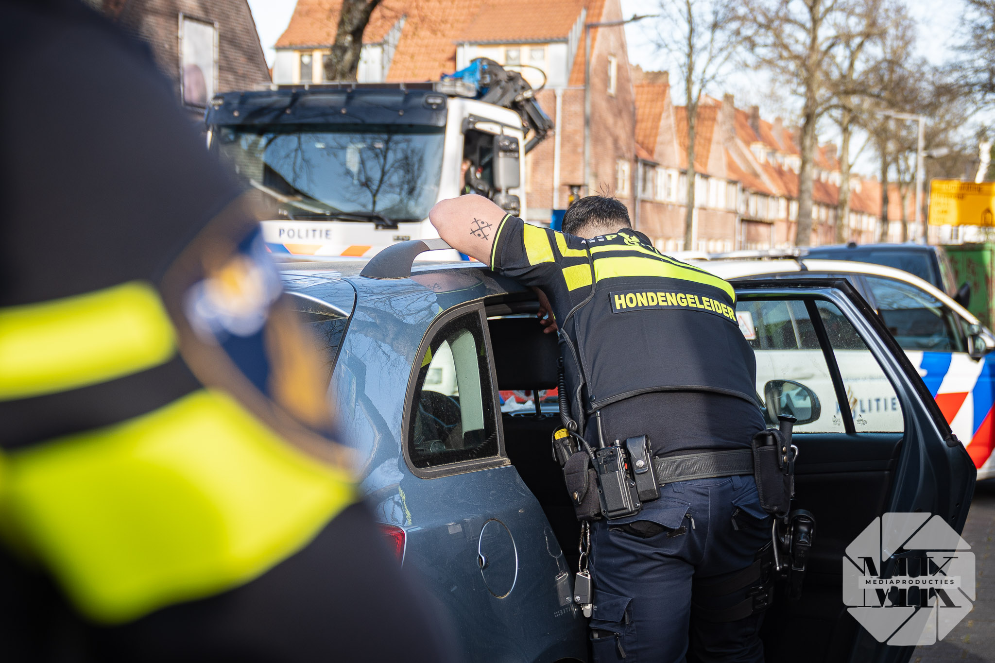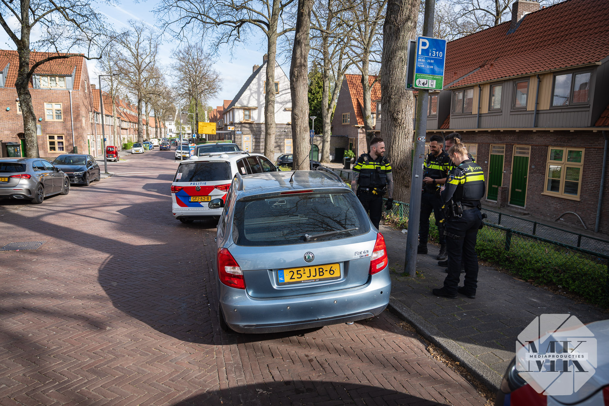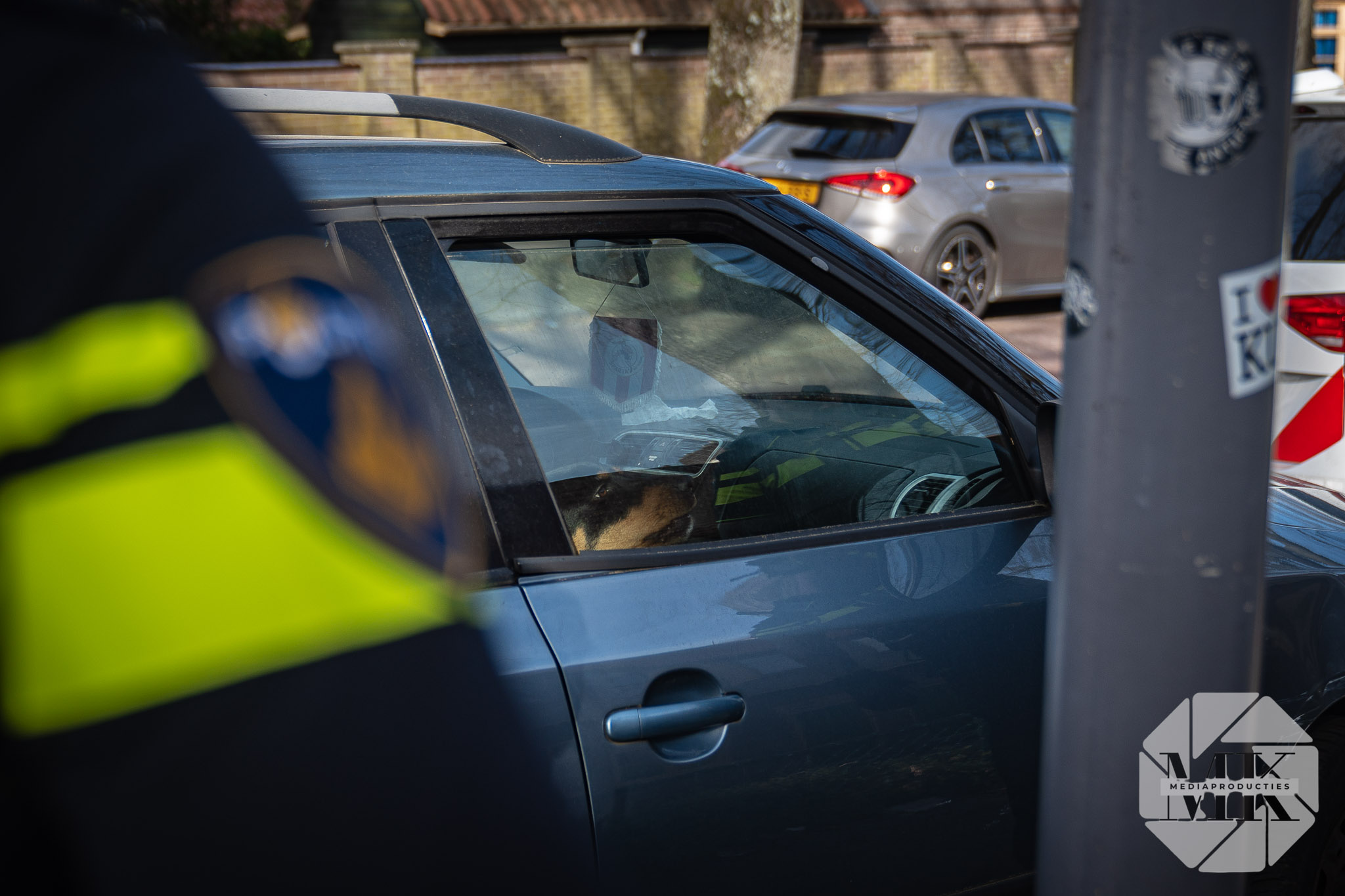 Agenten troffen de auto met zichtbare schade en een ontbrekende wieldop. Het voertuig stond scheef geparkeerd, wat extra opviel in de straat. De eigenaar is bekend, maar was niet aanwezig in de woning toen agenten daar aanklopten. Na controle is besloten de hond uit de auto te halen.
