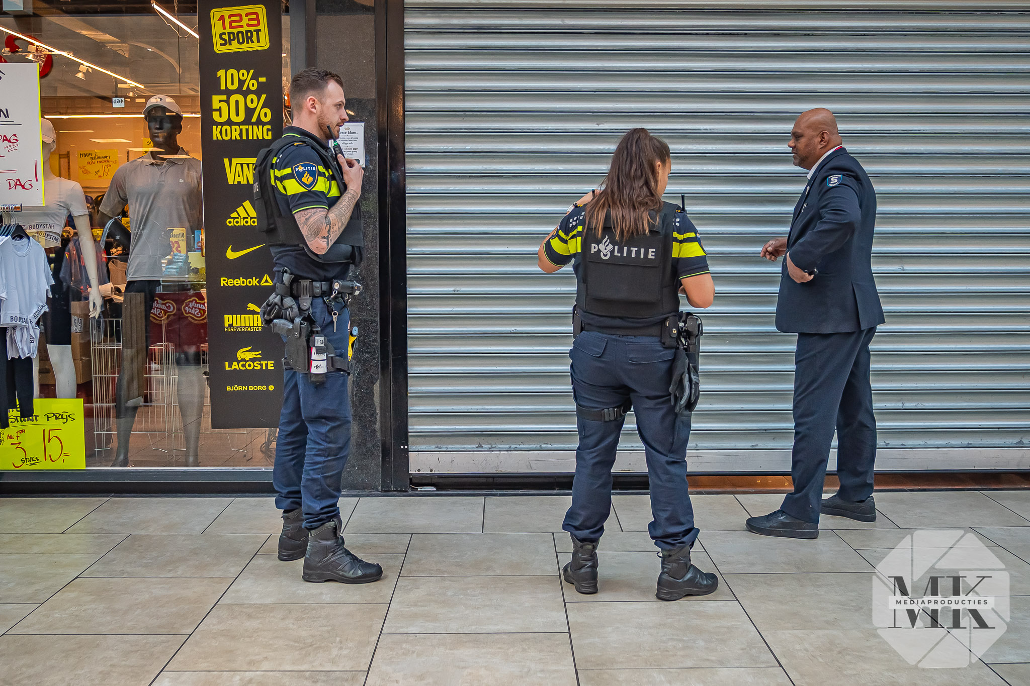 De verdachten waren in het zwart gekleed en droegen bivakmutsen. Zij renden na de overval naar buiten en gingen ervandoor op een deelscooter en een fatbike. Politie hield één man aan op de Hordijk en zette daar een plaats delict af voor sporenonderzoek.