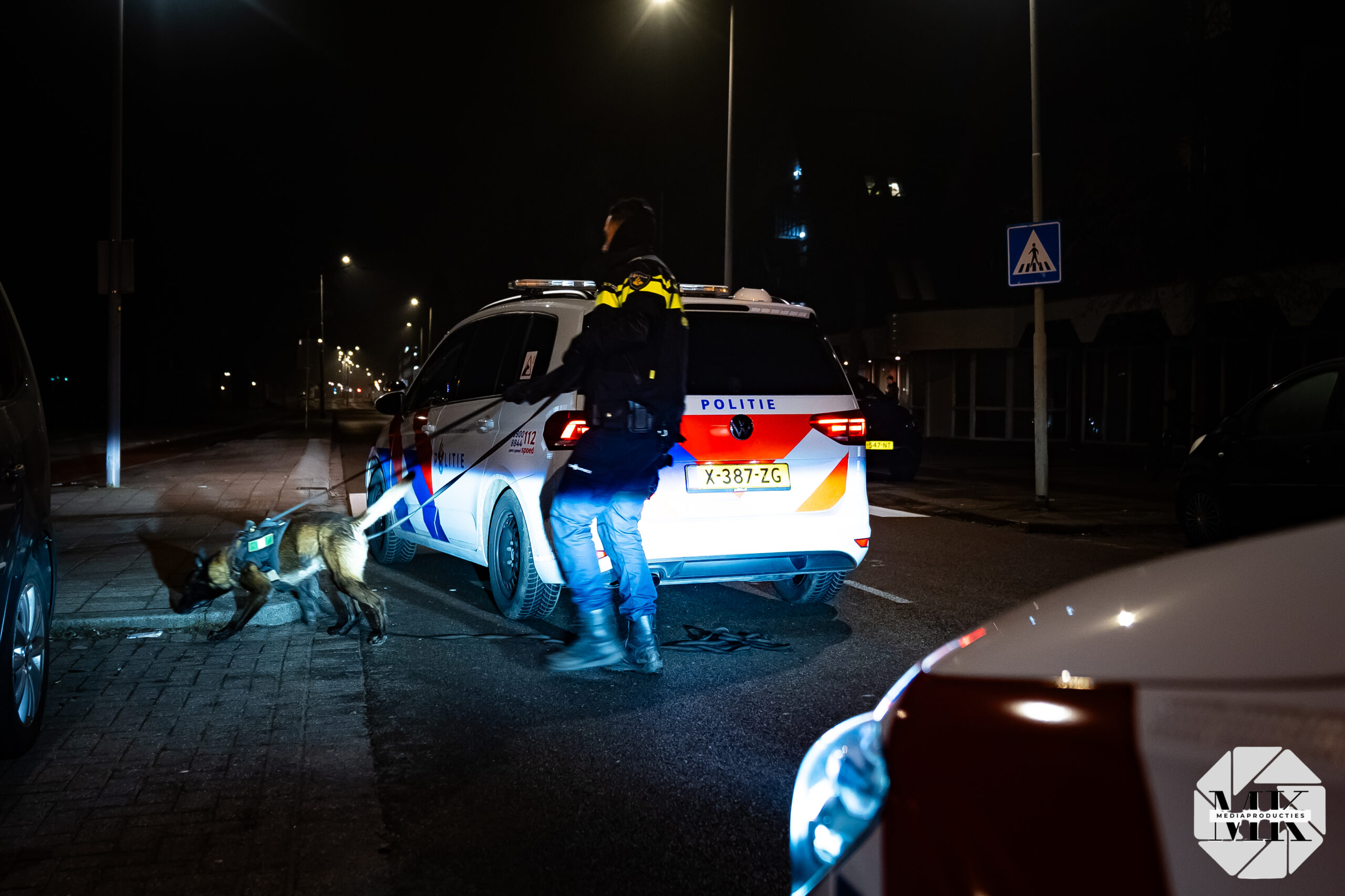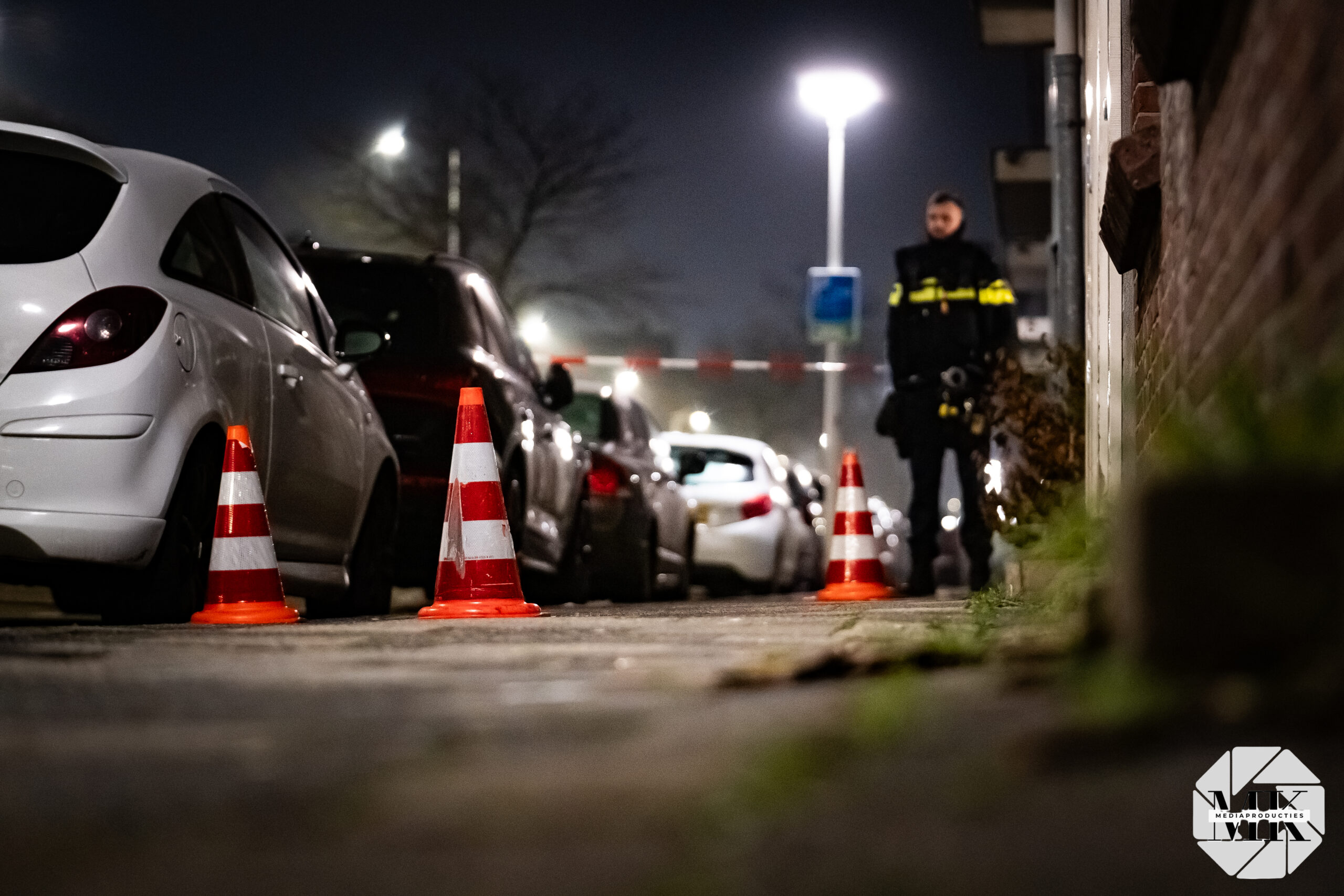 Na het incident vertrok een mannelijke verdachte op de fiets. De politie zette het huizenblok af en trof op straat drie hulzen aan. Met een politiehond is in de omgeving gezocht naar de verdachte en het wapen, zonder resultaat.