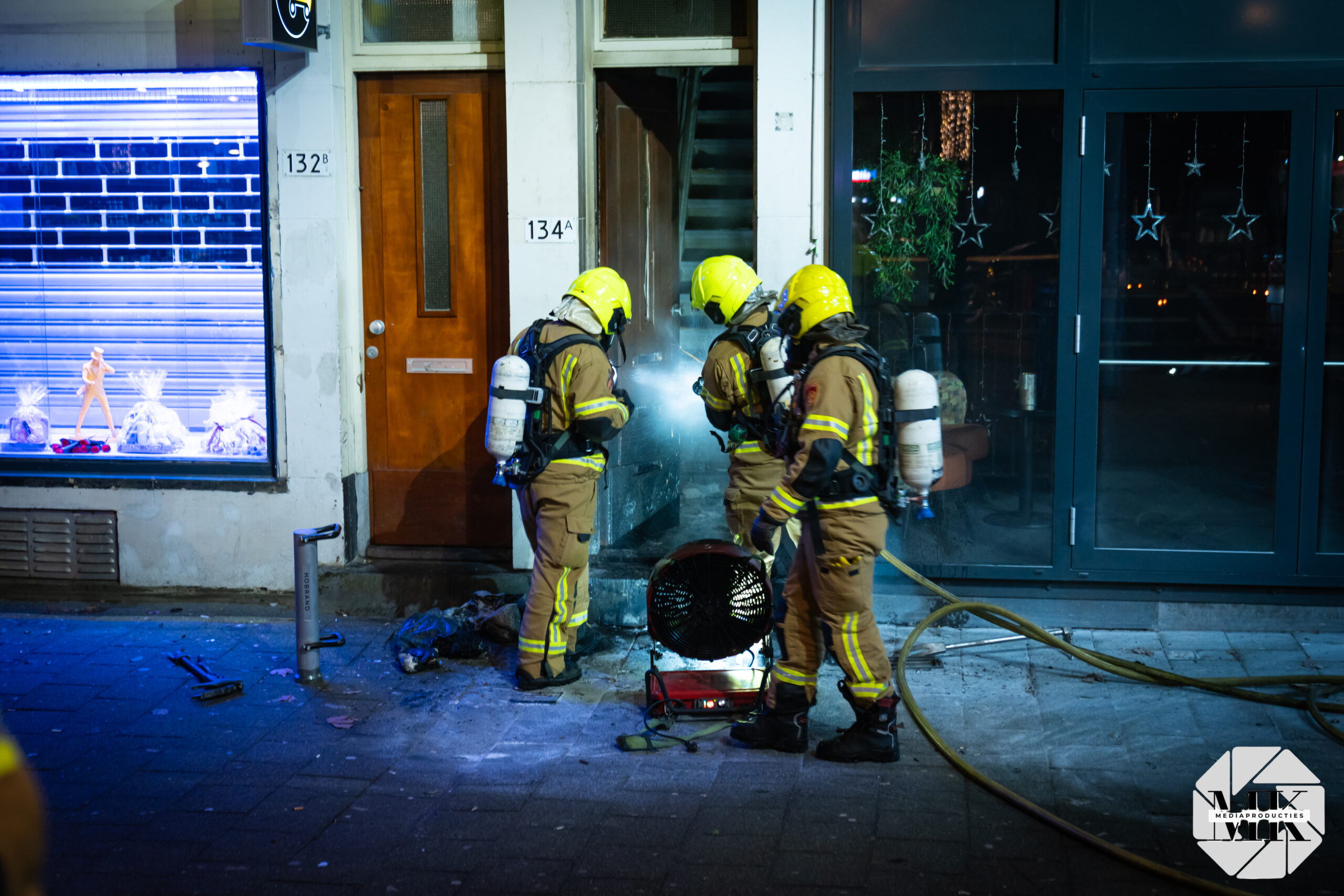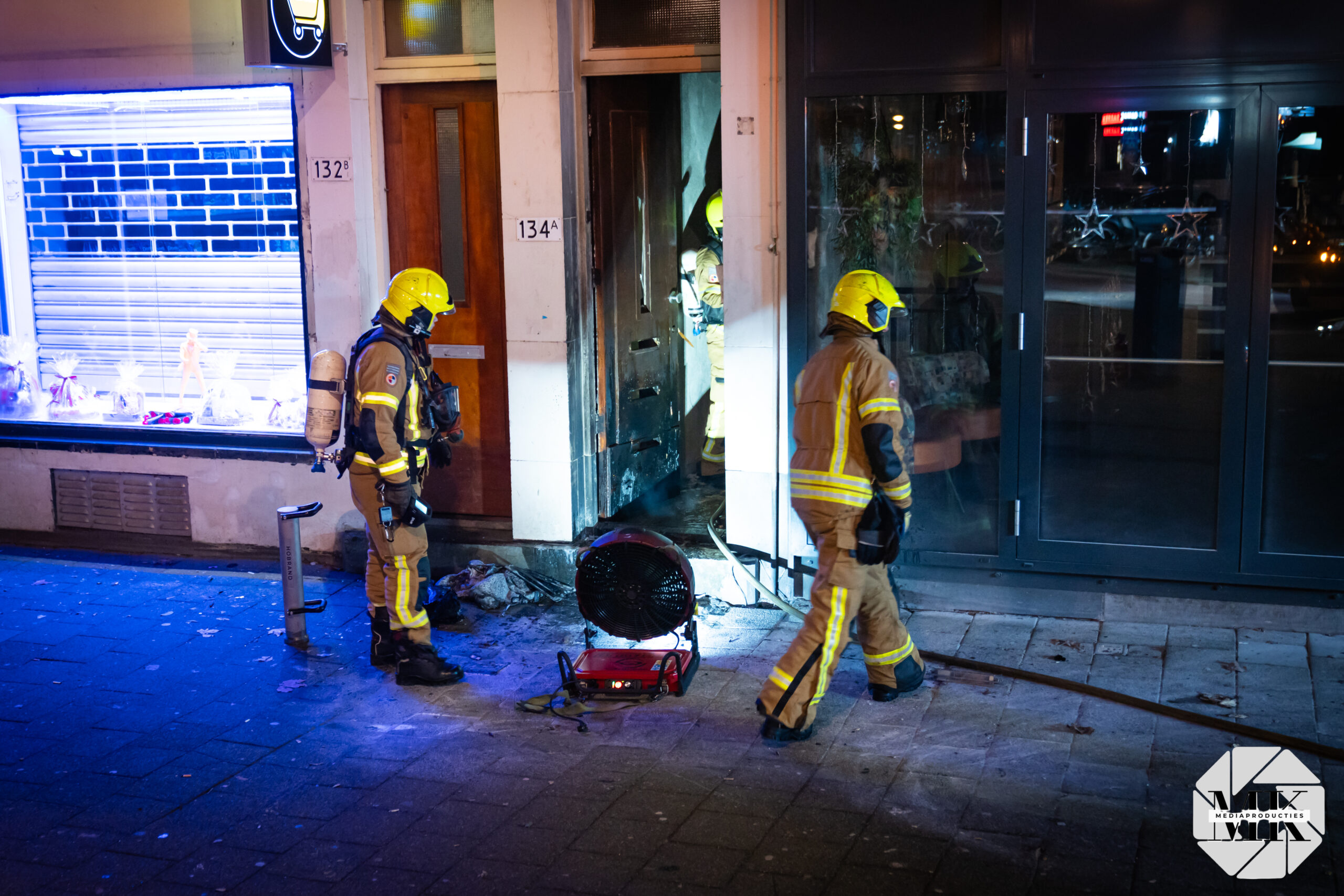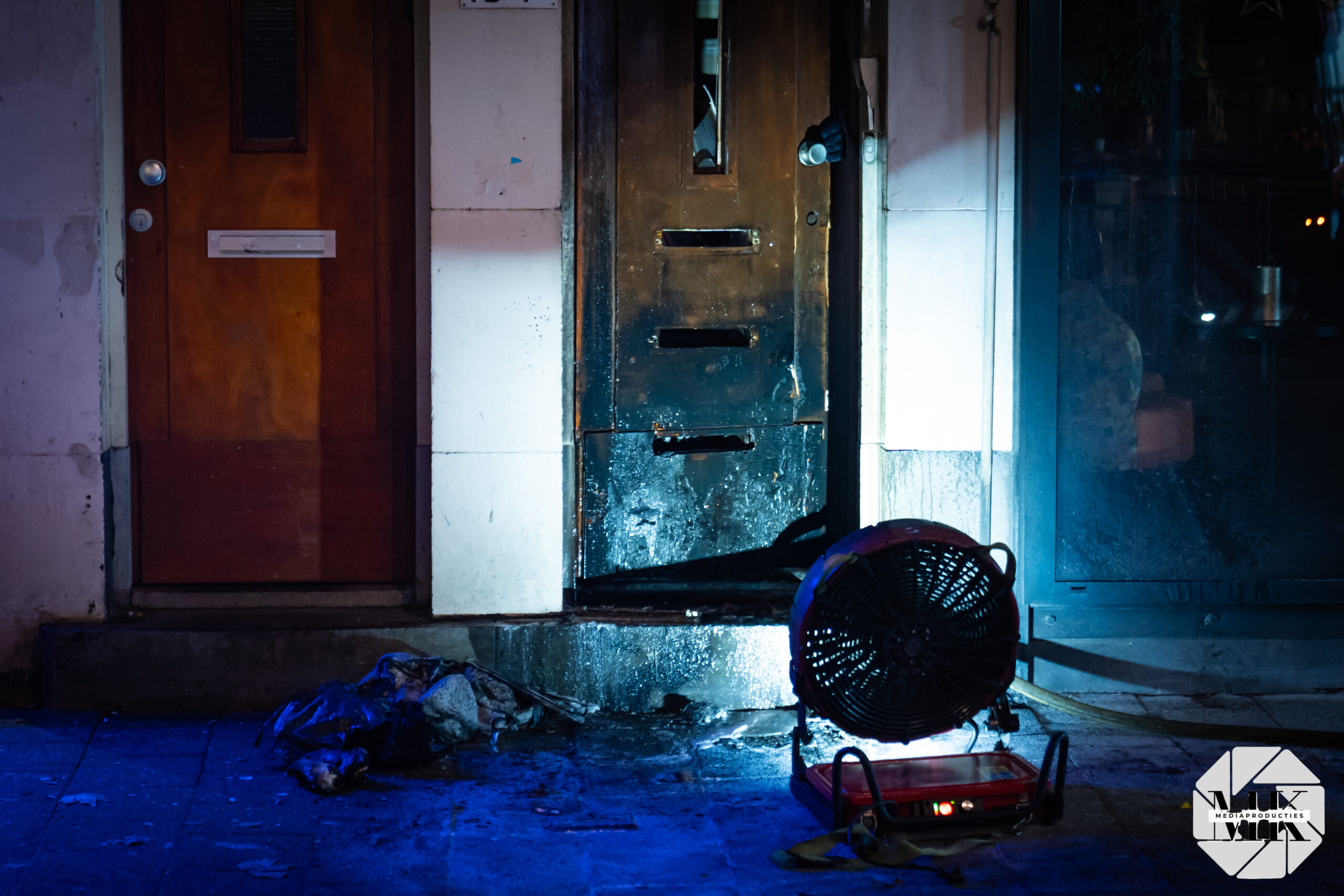 In totaal zijn zeven personen geëvacueerd, onder wie twee jonge kinderen. De voordeur stond in brand en is door de brandweer nageblust. Na het blussen controleerde de brandweer de woningen op koolmonoxide. In enkele woningen werd koolmonoxide gemeten. Met een ventilator is geprobeerd dit te verdrijven. Eén bewoner kon zijn woning niet in doordat de deur dichtviel. Met een autoladder bracht de brandweer een brandweerman naar boven om de deur te openen.